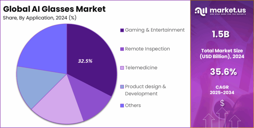 生成式AI的加入,使得眼镜不再是被动的显示终端,而是能主动提出操作建议的“数字助理”。在医疗场景,AI驱动的实时影像识别帮助外科医生在手术中快速定位关键组织;在物流领域,佩戴者可通过语音查询库存并获取路径规划,显著降低了作业错误率。与此同时,Gaming & Entertainment 仍是最大的应用版块,2024年占比 32.5%,驱动厂商不断投入沉浸式渲染与手势交互技术。