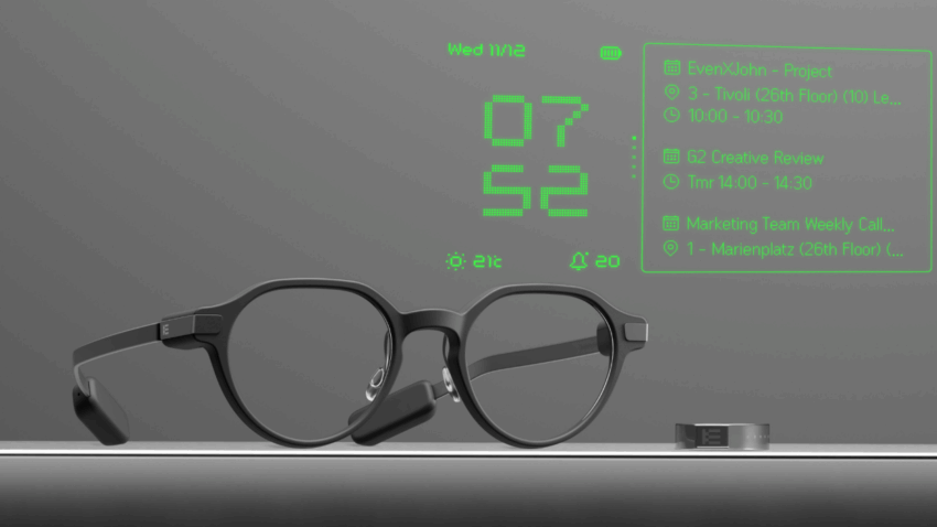Even Realities G2 智能眼镜外观,展示单色微光显示与环形控制器
